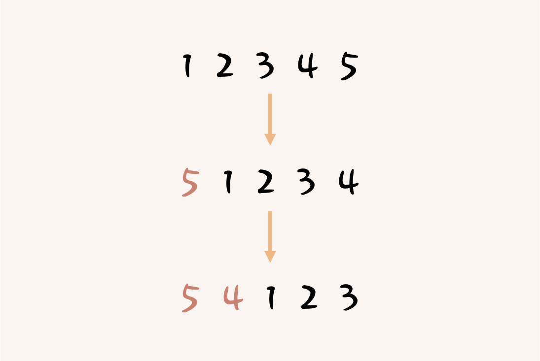 예를 들어 k가 2인 경우, 왼쪽에 있는 배열은 오른쪽에 있는 배열로 바뀔 수 있습니다.